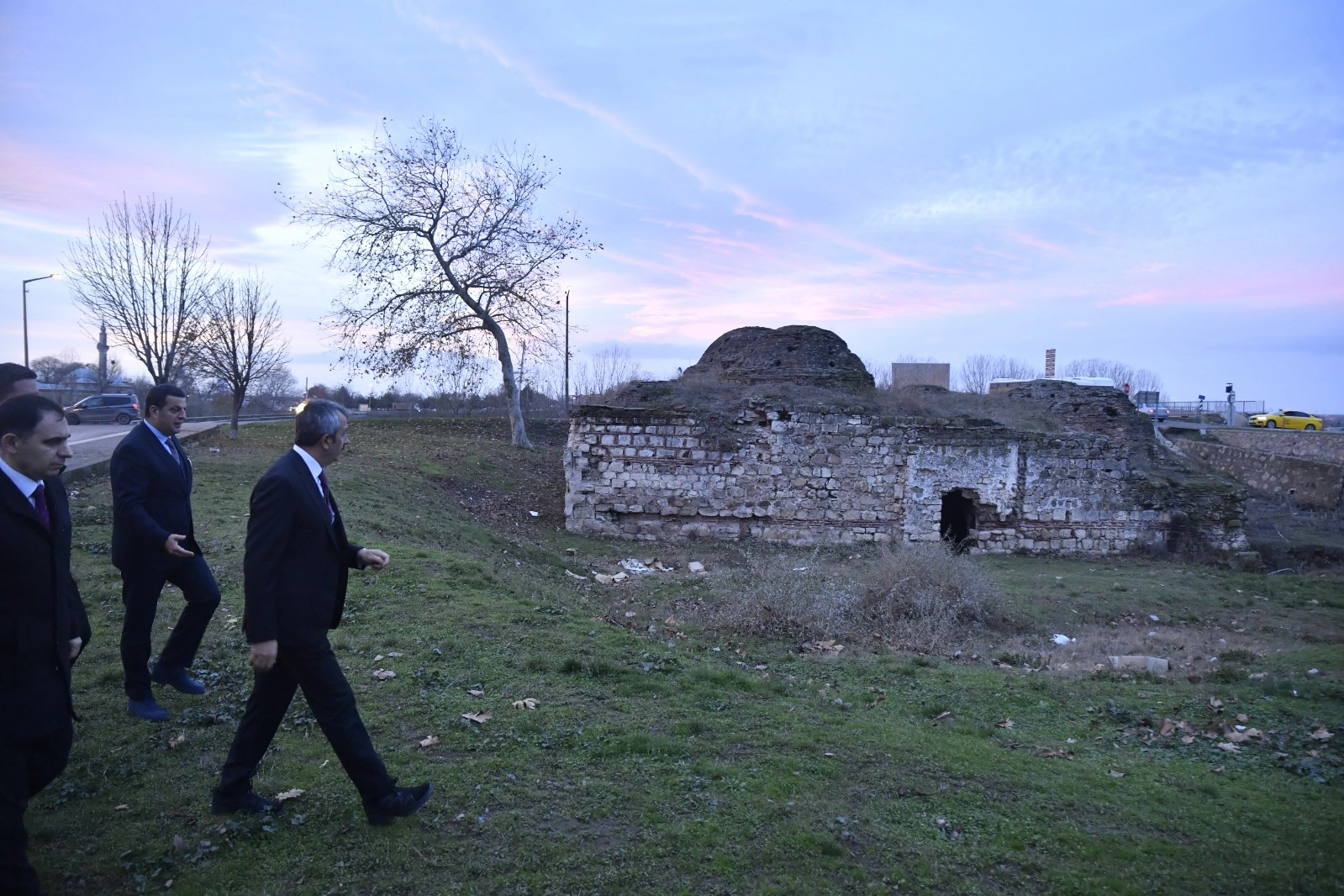 Edirne Valisi Yunus Sezer, kentin önemli tarihi yapılarından olan hamamda incelemede bulundu.