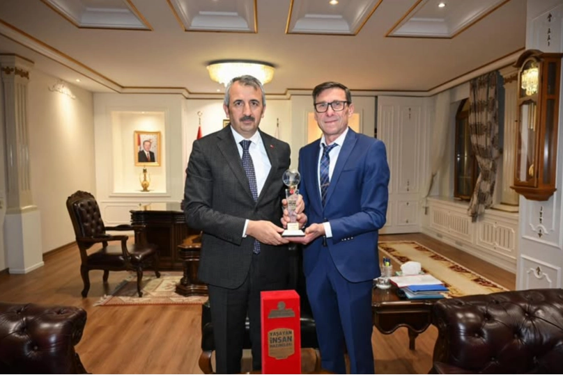 Vali Yunus Sezer, Özcan Abacı'yı başarısından dolayı tebrik etti.