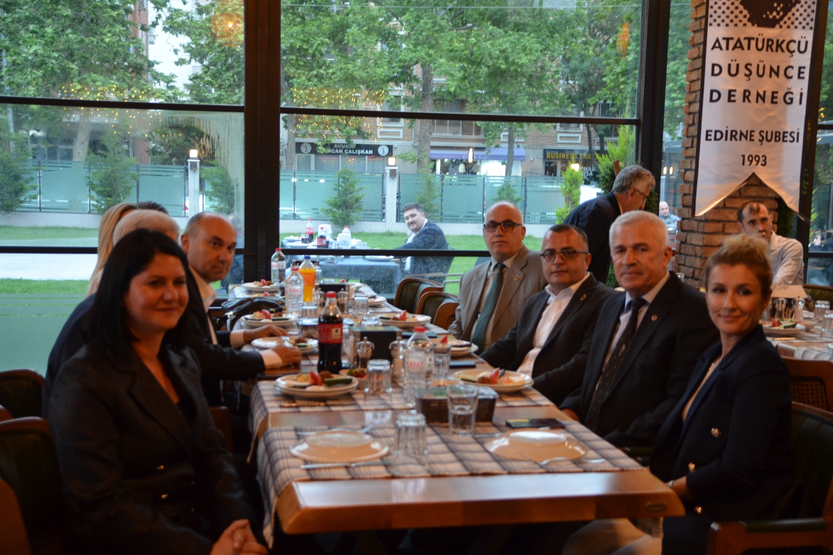 Atatürkçü Düşünce Derneği Edirne Şubesi tarafından bir restoranda 19 Mayıs Dayanışma Yemeği düzenlendi. Düzenlenen yemeğe Atatürk Düşünce Derneği Genel Başkan Yardımcısı Dr. Necmi Akyalçın, Atatürkçü Düşünce Derneği Edirne Şube Başkanı Celil Özcan, Edirne Belediye Başkanı Av. Filiz Gencan Akın, siyasi parti temsilcileri, sivil toplum kuruluşlarının temsilcileri, sendika temsilcileri ve dernek üyeleri katıldı.