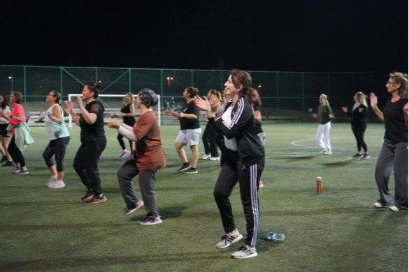 16 Eylül’de saat 20:00’da Lüleburgaz Yıldızları Futbol Akademisi’nde antrenör Fatma Menekşeoğlu öndeliğinde gerçekleştirilen etkinlikte kadınlar 1 saat boyunca step aerobik yaptı.