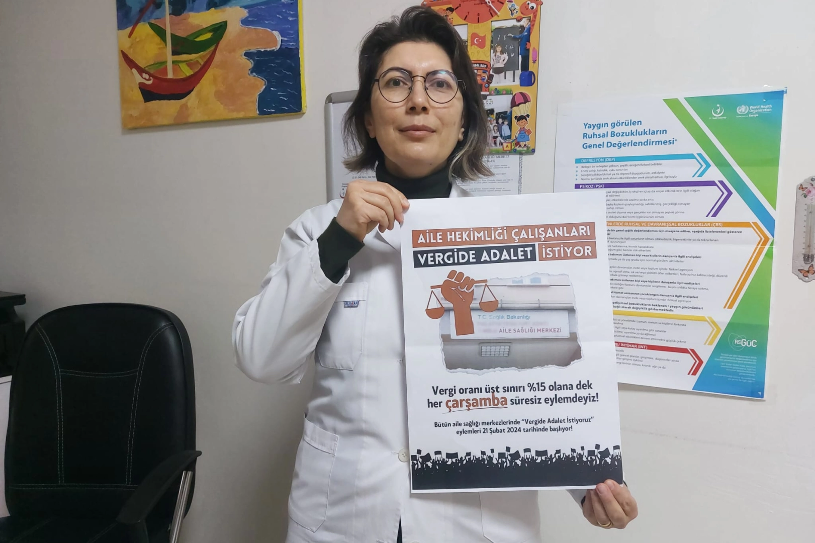 Türk Tabipleri Birliği Aile Hekimliği Kolu Sağlık Sosyal Hizmet Emekçileri Sendikası geçtiğimiz hafta Edirne’den vergide adalet istediklerini belirterek bir basın açıklaması gerçekleştirmişti. Bu hafta da aile hekimleri vergide adalet için süresiz eylemlerini başlattılar.
