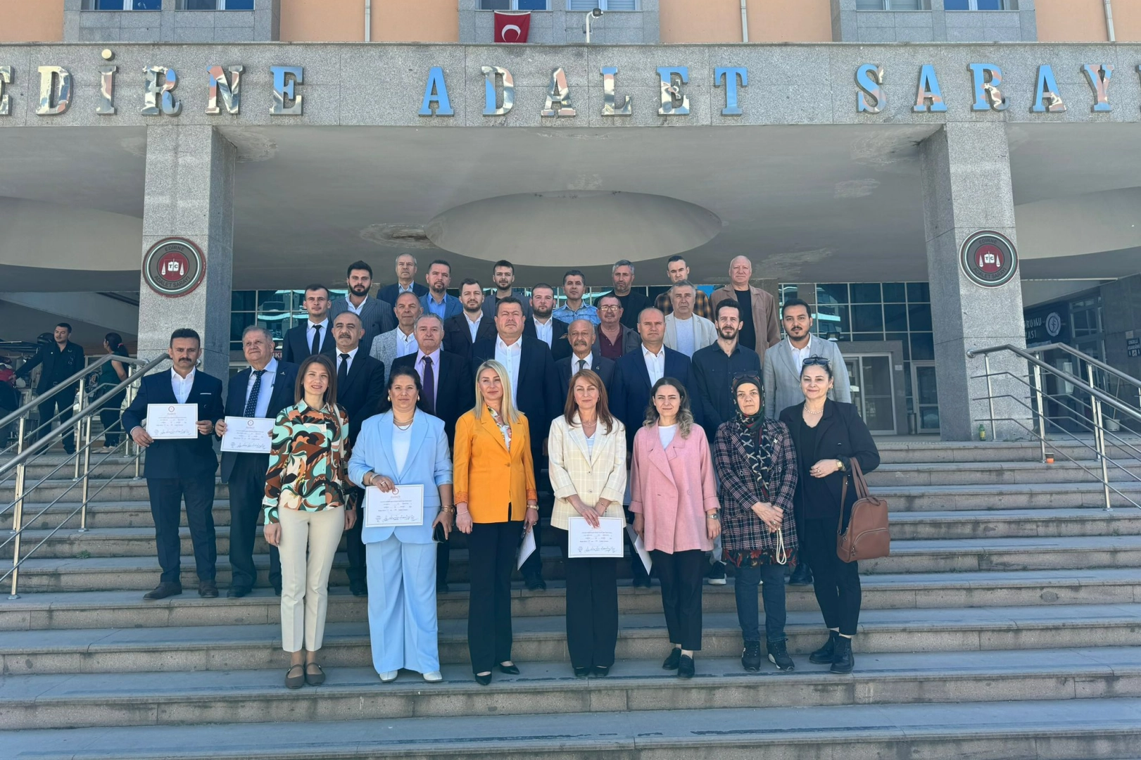 Seçilen AK Parti Edirne Belediye Meclisi ve İl Genel Meclisi üyeleri mazbatalarını aldıktan sonra Edirne Adliyesi önünde hatıra fotoğrafı çektirdi.