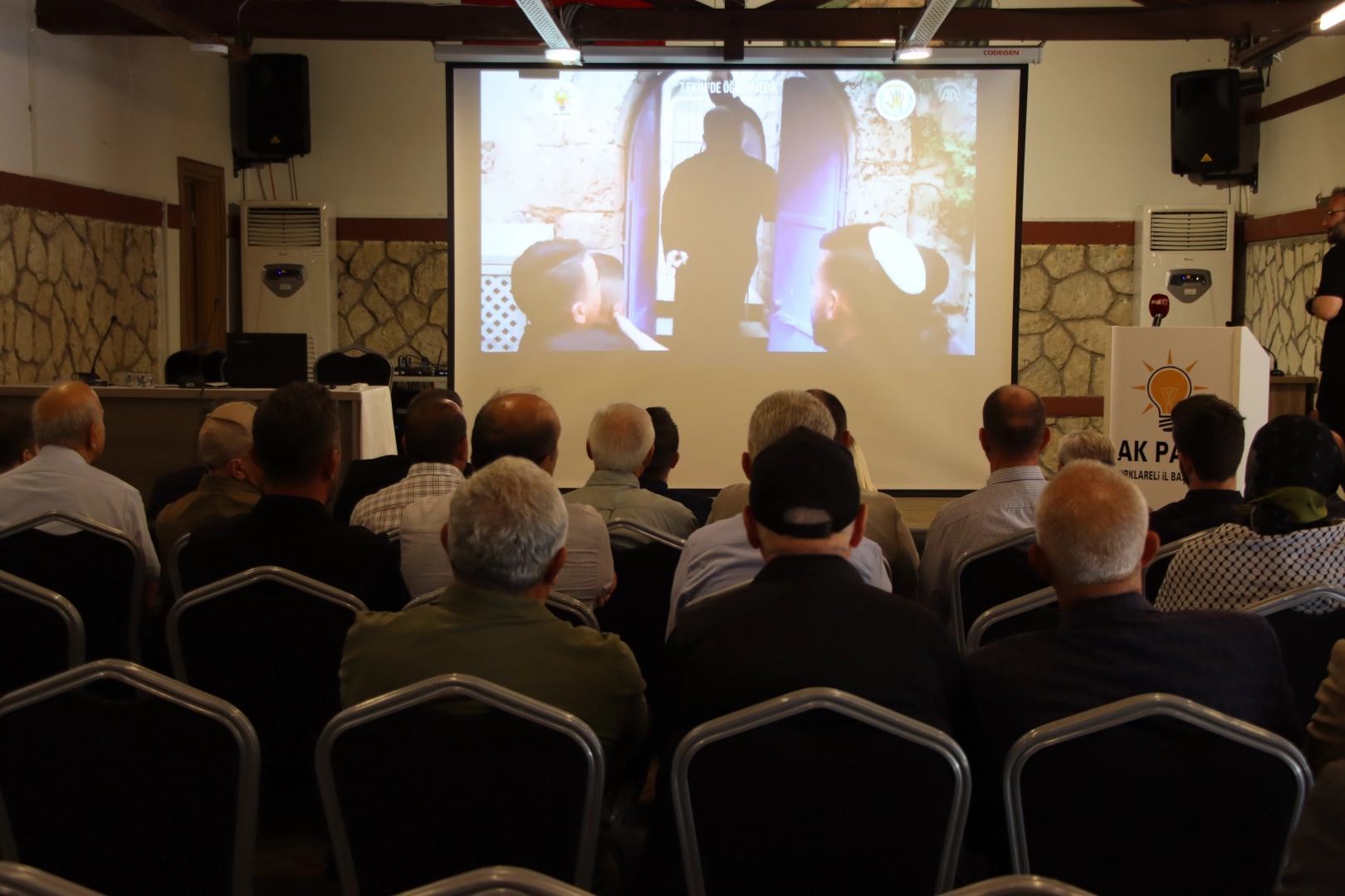 İl Özel İdaresi Cazibe Merkezinde gerçekleştirilen programda, İsrail'in Filistin'e yönelik saldırılarının yer aldığı video gösterimi yapıldı.