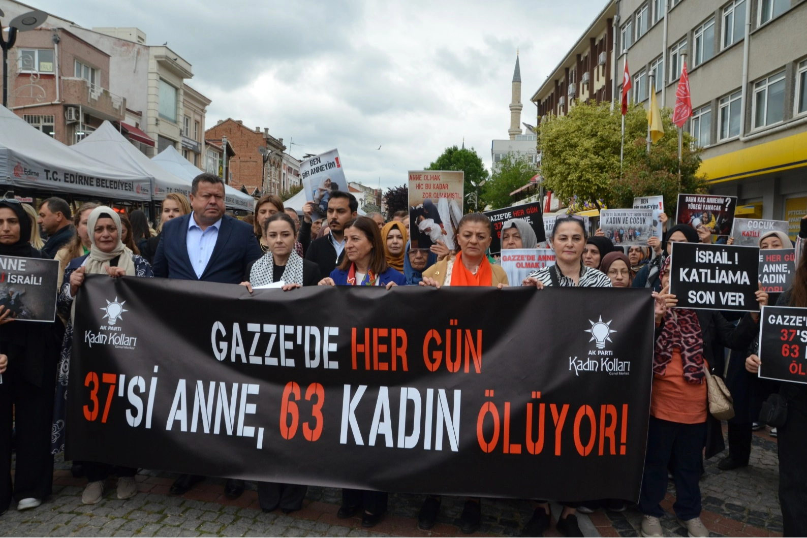 AK Parti Edirne İl Kadın Kolları Başkanlığı, Edirne’nin Saraçlar Caddesi’nde Gazze’deki anneler için eylem düzenledi. Eyleme, AK Parti Edirne Milletvekili Fatma Aksal, AK Parti Edirne İl Başkan Vekili Aydoğan Akıncı, AK Parti Edirne İl Kadın Kolları Başkanı ve AK Parti İl Genel Meclisi Üyesi Nergis İnce ve partililer katıldı. Basın açıklamasını AK Parti Edirne İl Kadın Kolları Başkanı Nergis İnce okudu.