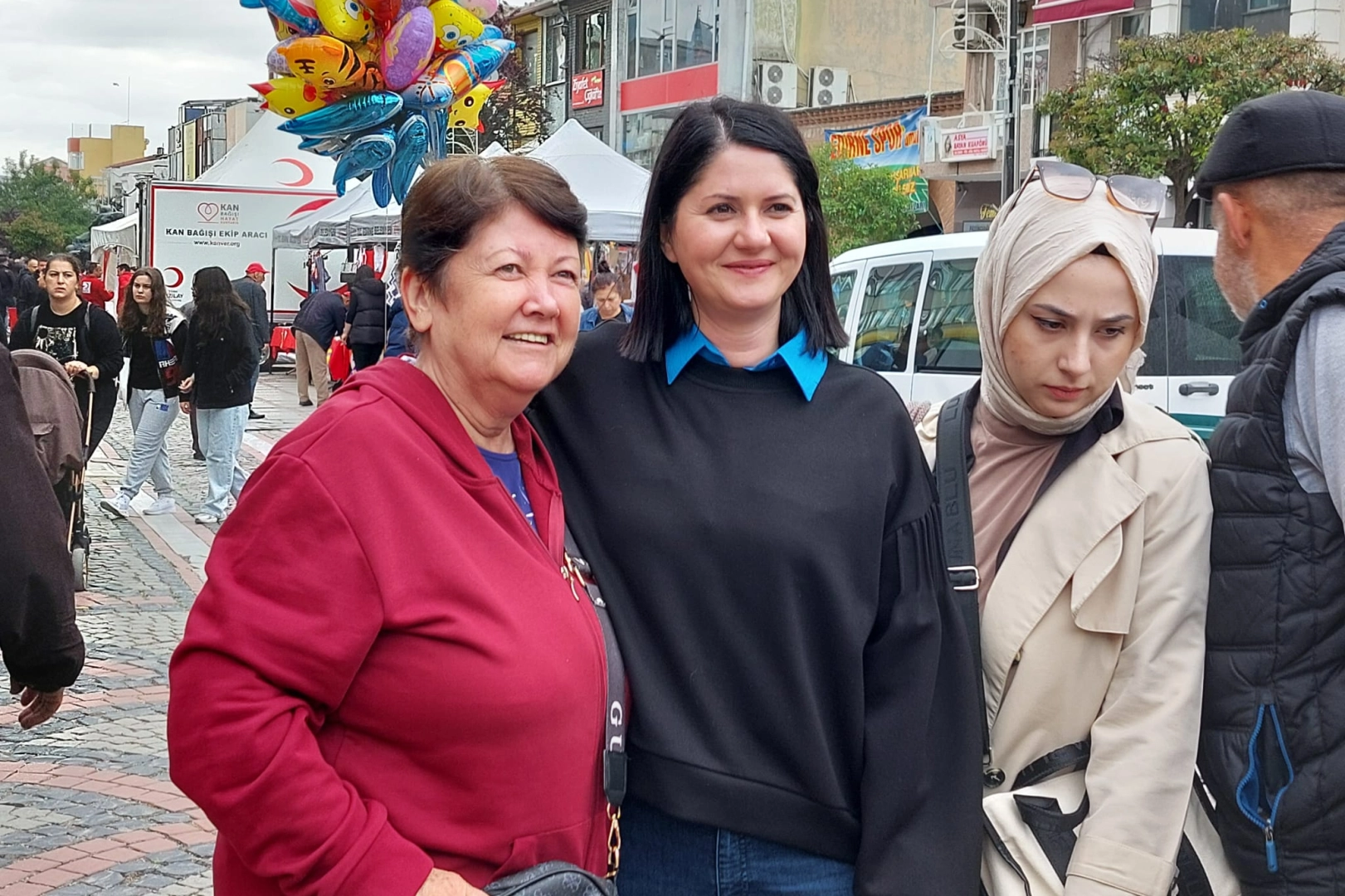 Emekçi kadınlarla tek tek konuşan Akın, emekçilerin sorunlarını dinledi. Daha sonra vatandaş tarafından da durdurulan Akın, vatandaşın talebini kırmayarak fotoğraf çektirdi. Akın, fotoğraf çekimlerinin ardından alandan ayrıldı.