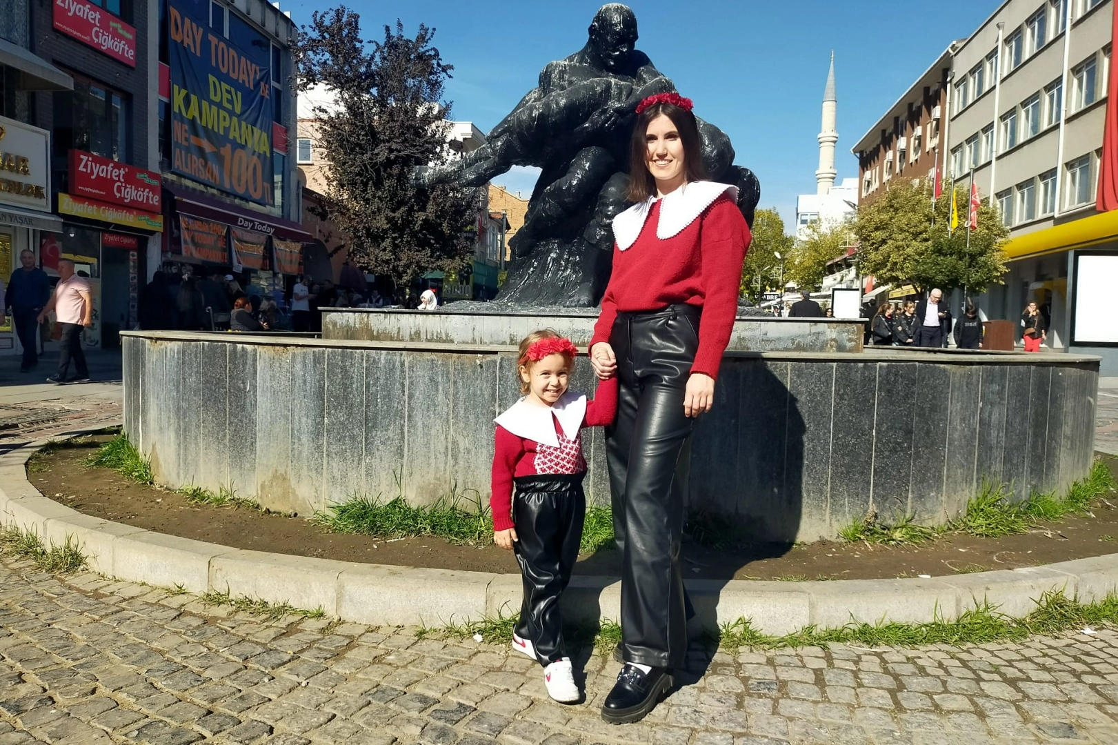 Tekirdağ'ın Malkara ilçesinde bir okulda Türkçe Öğretmeni olarak görev yapan Şeyda Şendil, 3 yaşındaki kızı İzil Vera Şendil ile bugün Edirne'ye geldi. Anne ve kızın kırmızı beyaz kombini görenlerin dikkatini çekti. Anne ve kızın kombinini görenler fotoğraf çekilmek için yoğun ilgi gösterdi.