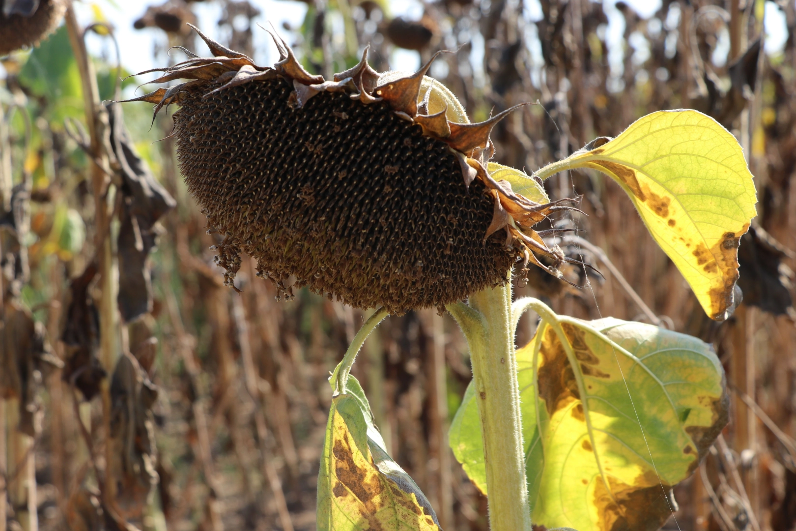"Ayçiçeği tam hassas döneminde, verimi belirleyecek kritik periyotlardan geçiyor. Çiçeklerini dökmüş, süt olum devresinde ve dane doldurma periyodunda. Yüzde 30-40 civarında verimin belirlendiği bir durum. Temmuz ayındaki sıcaklar ayçiçeğini çok kötü etkiledi. Çiçekte olanlar yandı, süt olum devresinde olanlar da suyunu kaybetti. Bu dönemin ardından yağış ve serin bir hava beklerken bugünlerde tekrar sıcak hava dalgası geldi. Kuraklık nedeniyle üreticiler buğdayda düşük verim almıştı. Eğer ilerleyen günlerde böyle devam ederse ayçiçeğinde de kötü bir durumla karşılaşabiliriz."
