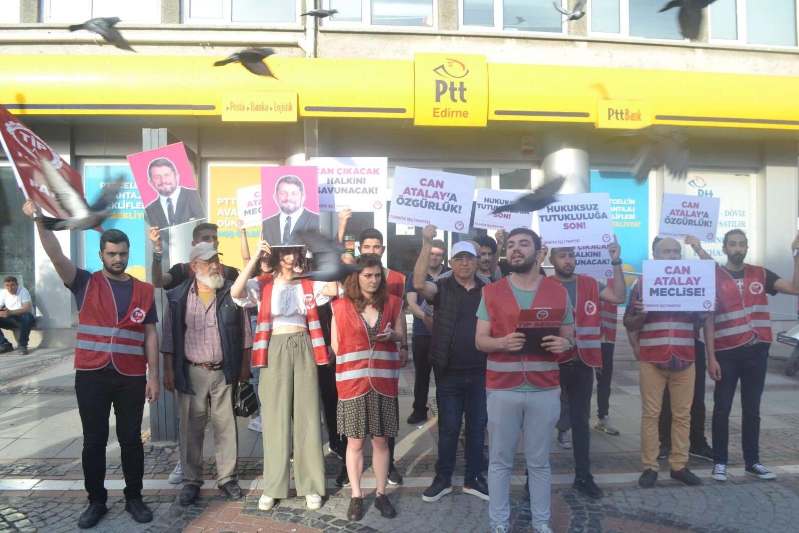 Türkiye İşçi Partisi(TİP) Edirne İl örgütü, partilerinden Hatay milletvekili seçilen Can Atalay için postane önünde basın açıklaması düzenlediler. Gezi davası tutuklusu Can Atalay’ın Hatay’dan milletvekili seçilmesine rağmen serbest bırakılmaması nedeniyle TİP’liler Edirne’nin Saraçlar Caddesi’ndeki postane önünde yaptıkları açıklamayla protesto ettiler. Açıklamada, Can Atalay’ın halk tarafından seçilmiş bir milletvekili olduğu ve hemen bırakılması gerektiğine değinildi. Partililer, açıklama sonrası Can Atalay’a özgürlük sloganları atarak dağıldılar. HÜSEYİN AĞIRSEVEN