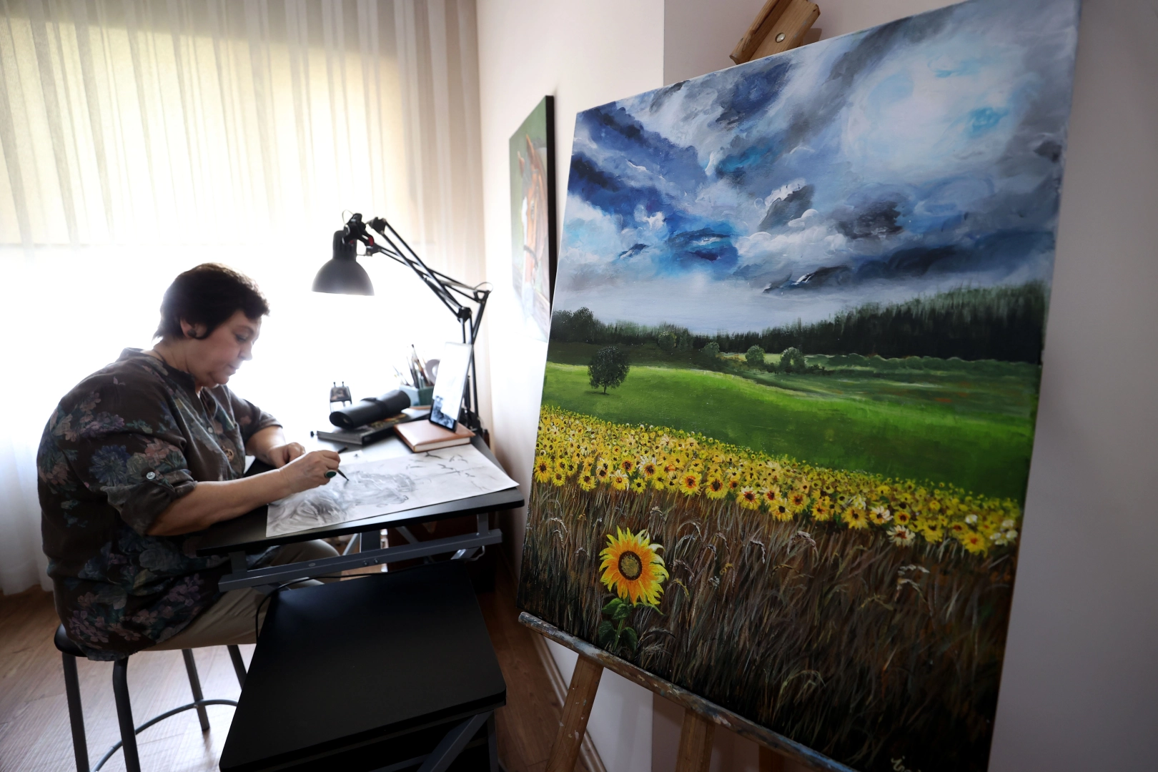 Tuvalin başına geçtiğinde tüm dertlerini, sıkıntılarını unutup hayallere daldığını vurgulayan Erköy, "Ben bazen sabahlara kadar bile resim yapıyorum. Gerçekten tutkuyla yapıyorum ben bu işi." dedi.