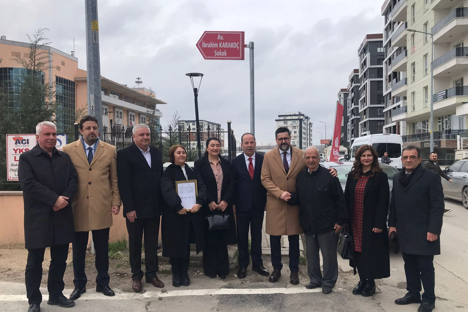 Av. İbrahim Karakoç'un isminin verileceği sokağın açılışı bugün Karakoç ailesinin, sevenlerinin, meslektaşlarının ve Edirne Belediye Başkanı Recep Gürkan’ın katıldığı tören, Belediye Bandosu eşliğinde saygı duruşu ve istiklal marşının okunmasıyla başladı. Karakoç, bu anlamlı fikrin Recep Gürkan’dan çıktığını ve Karakoç ailesi için çok kıymetli olduğunu söyledi.