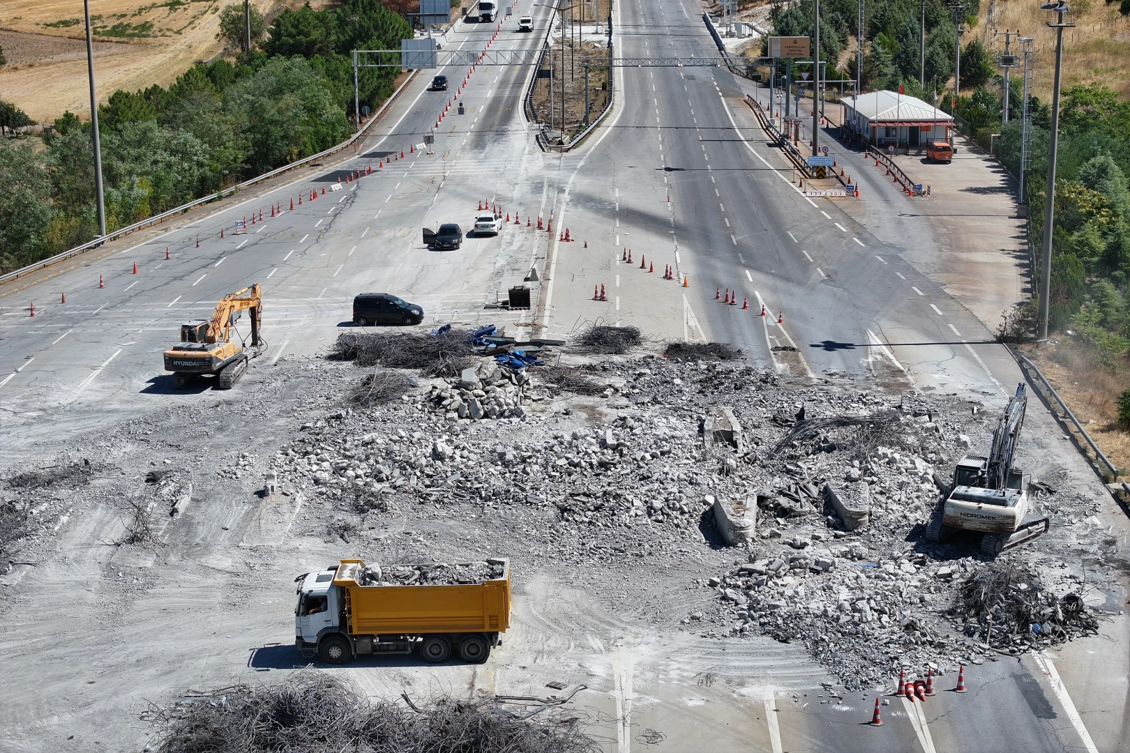 Ücret toplama gişelerinin büyük kısmının yıkımı neredeyse tamamlandı.