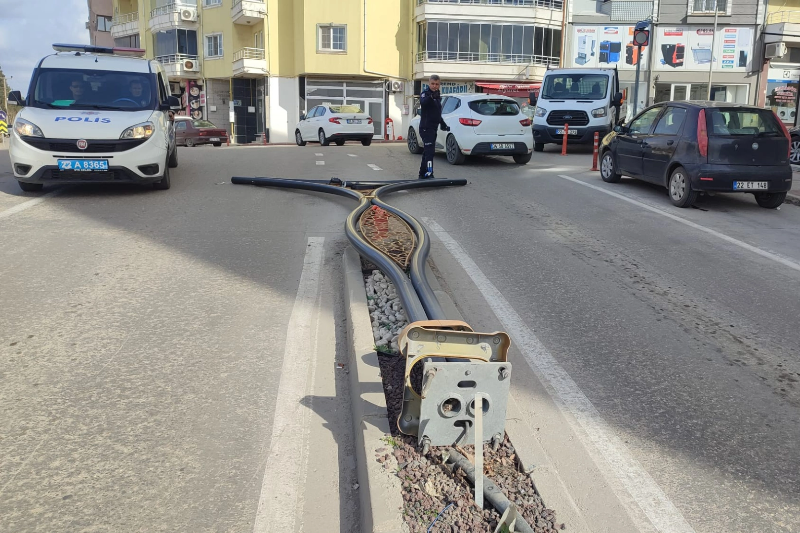 Alınan bilgiye göre, Muammer Aksoy Caddesi’ndeki bir aydınlatma direği, rüzgar nedeniyle yoldan geçen tarım aracının üzerine devrildi. Tarım aracının sürücüsü yaralanırken, ihbar üzerine olay yerine sağlık, polis ve zabıta ekipleri sevk edildi. Yaralı sürücü olay yerine gelen ambulans ile Keşan Devlet Hastanesi’ne kaldırılarak tedavi altına alındı. Aydınlatma direği de belediye ekiplerince yoldan kaldırıldı.