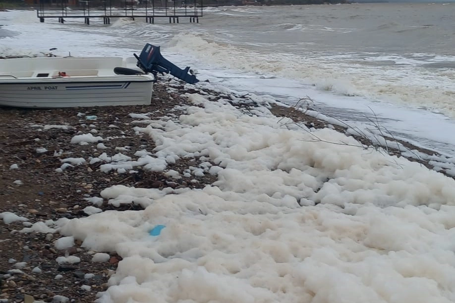 Ayvacık ilçesine bağlı Sazlı köyü sahilinde kıyıya vuran deniz suları sahilde köpük tabakası oluşturdu. Sazlı köyü sahilinde yürüyüşe çıkan vatandaşlar sahil bölgesinde deniz sularının sebep olduğu köpükleri cep telefonuyla kaydetti.