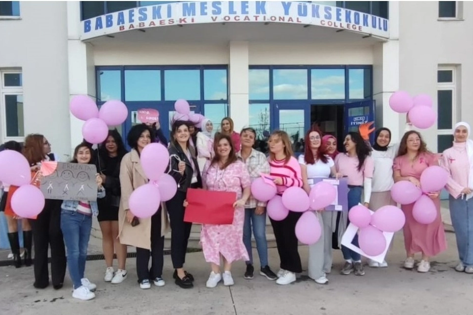 Etkinlik Babaeski Meslek Yüksekokulu'nda gerçekleştirildi. Meme kanseri farkındalık ayı etkinlikleri kapsamında düzenlenen organizasyonda, Dr. Öğr. Üyesi Demet Onur Kalfa koordinatörlüğünde kanserde erken tanının önemi anlatılırken, pembe balonlar gökyüzüne bırakıldı. Meme kanseri, meme dokularında kötü huylu (kanserli) hücrelerin oluşmasıyla ortaya çıkan kanser türüdür. En yaygın meme kanseri türü, kanalların hücrelerinde başlayan duktal karsinomdur. Loblarda veya lobüllerde başlayan kanser lobüler karsinom olarak adlandırılırken, bu türün diğer meme kanseri türlerine göre her iki memede görülme sıklığı daha fazladır. Meme kanserinin en tipik belirtisi memede kitle veya meme dokusu şeklinde değişikliktir. Memede ele gelen kitle, meme cildi ve ucunda farklılıklar, meme başında akıntı gelmesi ve meme dokusu ve meme ucu şeklinde değişiklik ve içe çökme meme kanseri belirtileridir. Erken teşhiste tedavi edilebilen bir kanser olan meme kanseri, mamografi yöntemiyle teşhis edilir ve daha sonra tedavi sürecine geçilir.