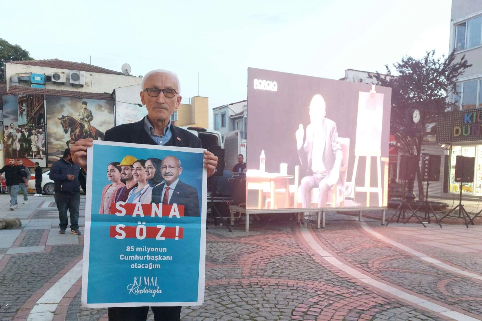 Programa katılan CHP Edirne İl Başkanı Samet Kahraman, CHP Edirne Merkez İlçe Başkanı Olcay Bakkalcı, partililer ve vatandaşlar caddeye kurulan ekranda programı izledi.