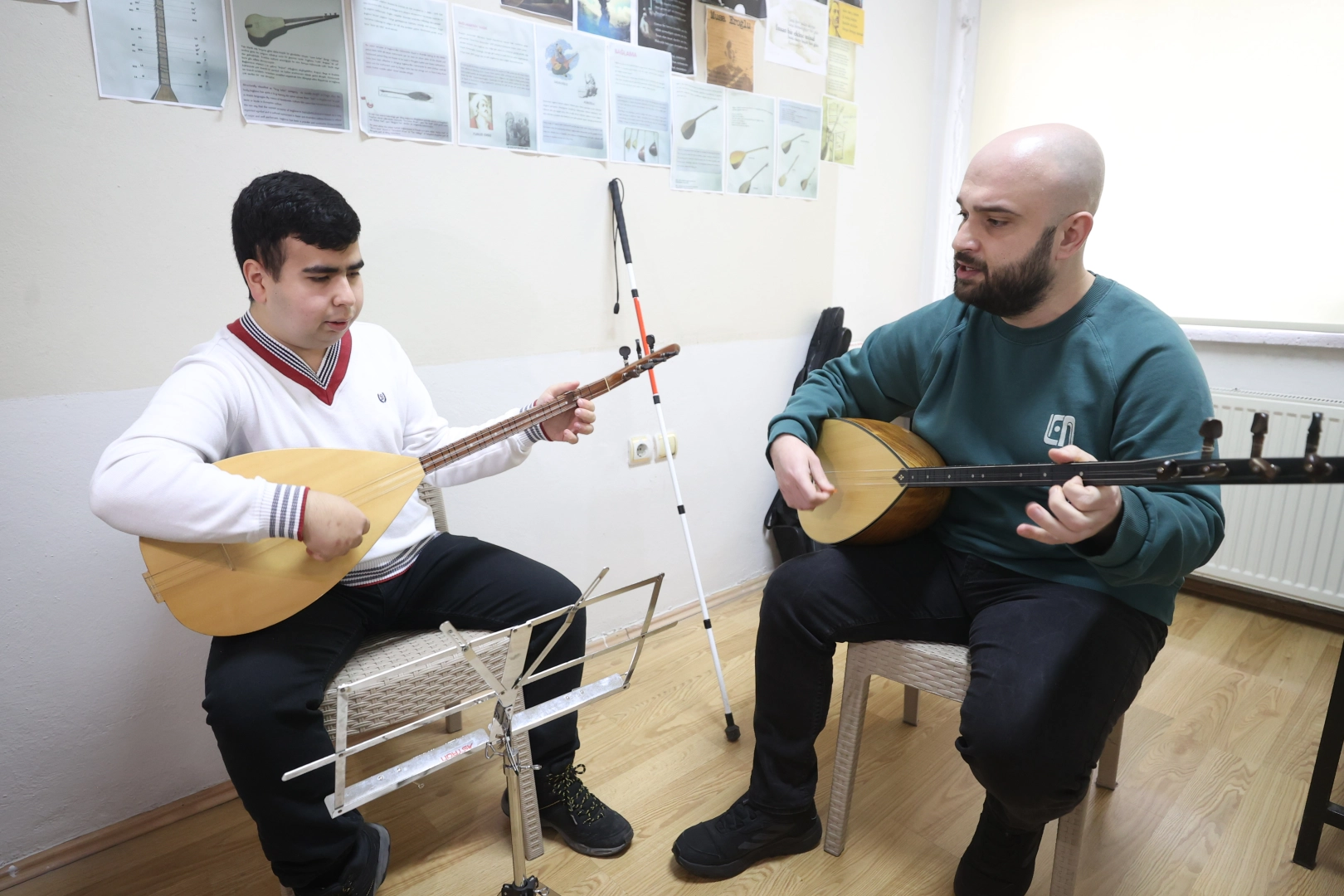 Kısa sürede bağlama çalmayı öğrenen Toprak, bağlama eğitmeni Gökay Dönmez ile çalışmalarını sürdürüyor.