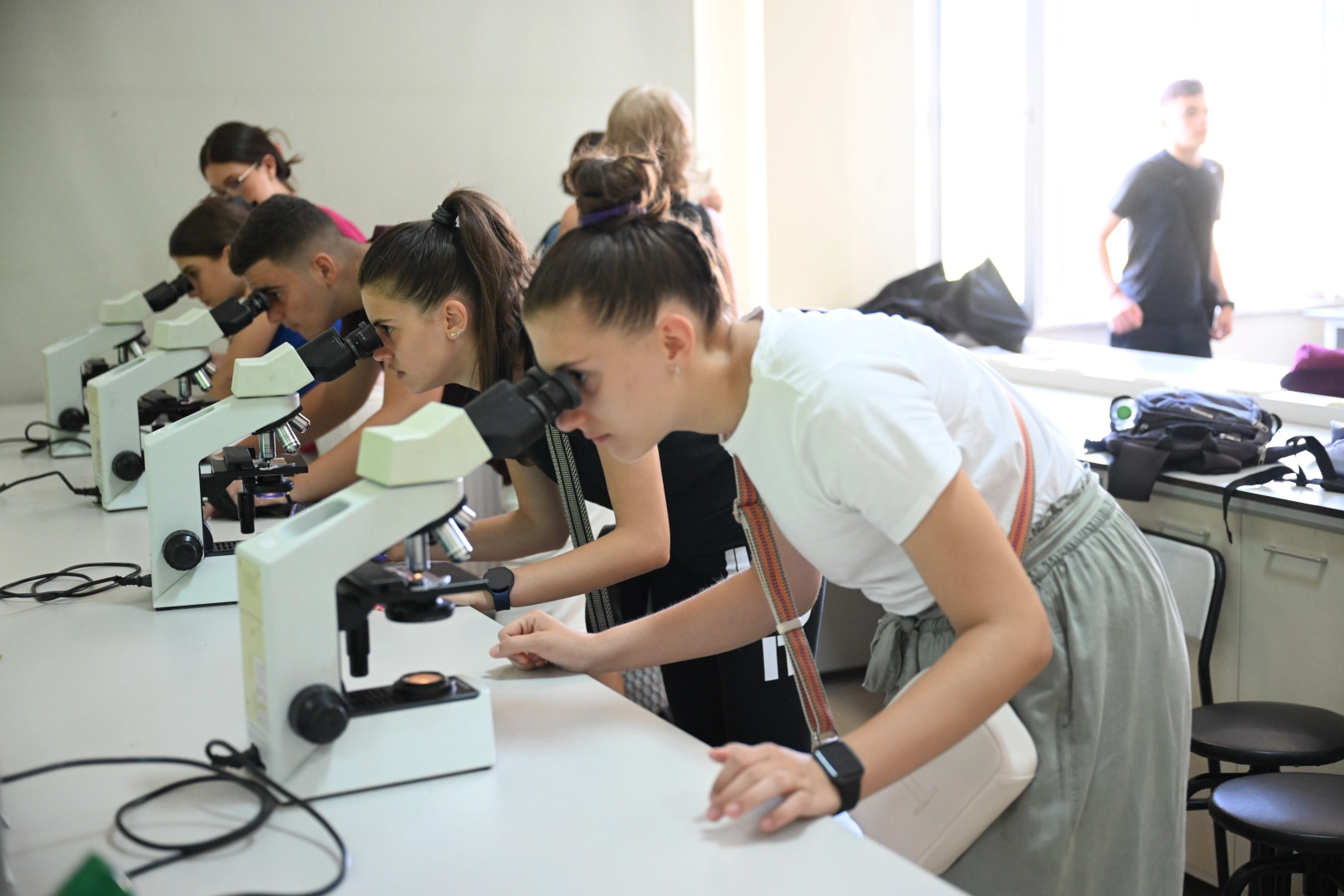 Öğrenciler, fizik, kimya ve biyoloji laboratuvarlarında görevli akademisyenlerle birlikte karışımların ayrılması, mitoz bölünme evreleri, katılarda basınç ile mekanik, optik ve termodinamik deneyler yaptı.