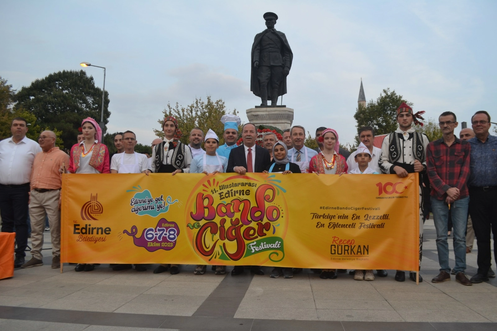 11. Edirne Bando ve Ciğer Festivali Türkiye’nin çeşitli belediyelerinden ve Balkanlardan gelen bando ekiplerinin de katılımıyla Atatürk anıtında düzenlenen törenle başladı.
