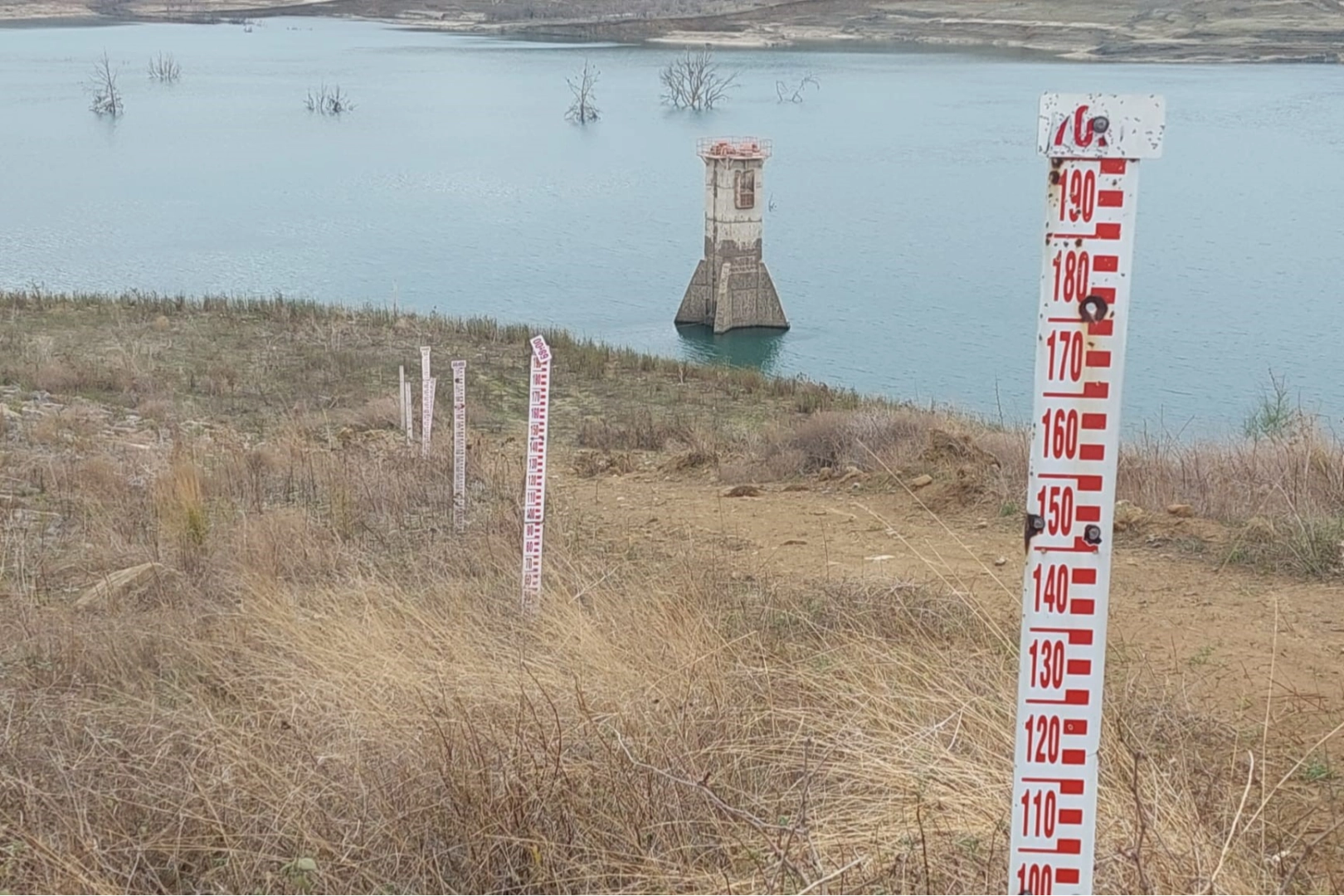 Tekirdağ’da kuraklıktan dolayı barajların dibindeki ağaçlar ortaya çıktı.
