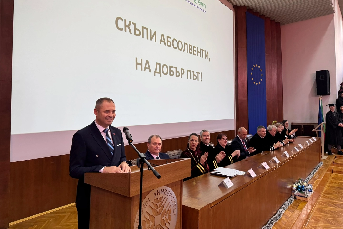 Başkan Bulut, törende Plovdiv Tarım Üniversitesi Bitki Koruma ve Tarım Ekolojisi Fakültesi’ni birincilikle tamamlayan Türk öğrencisi Sibel Rıdvan Nuri’ye diplomasını ve başarı belgesini takdim ederek kendisini tebrik etti. Sibel’in elde ettiği başarının büyük bir gurur kaynağı olduğunu belirten Bulut, öğrenciyi ve ailesini kutladı.