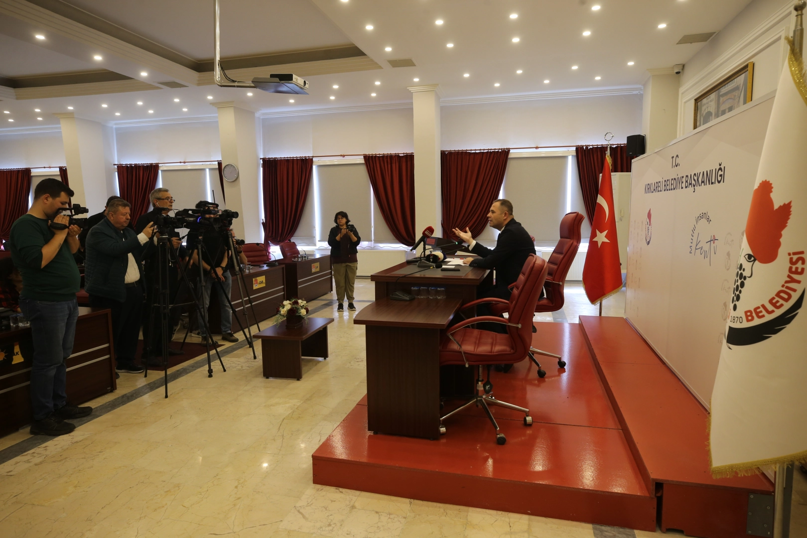 Bulut, belediye binasında gazetecilerin taleplerini dinledi.