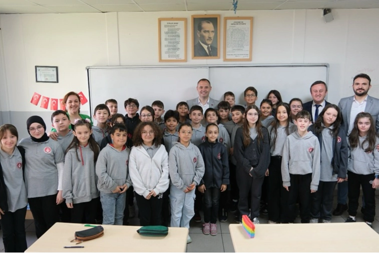 Sınıf ortamında öğrencilerle samimi bir sohbet gerçekleştiren Başkan Bulut, çocukların sorularını yanıtladı, demokrasi ve vatandaşlık kavramlarının önemine dikkat çekti.