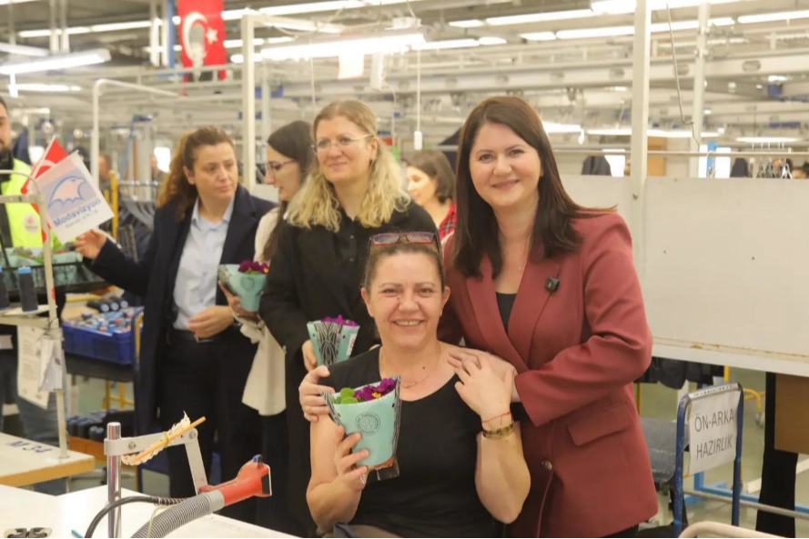 Edirne’de üretimin önemli merkezleri arasında yer alan Edirne Giyim, Modavizyon ve İpekyol fabrikalarını ziyaret eden Başkan Filiz Gencan, üretim bandında çalışan kadınları tek tek ziyaret ederek çiçek takdim etti ve günlerini kutladı. Ziyaretler sırasında çalışanlarla sohbet eden Gencan, kadınların ekonomik ve sosyal hayattaki rolünün önemine dikkat çekti.