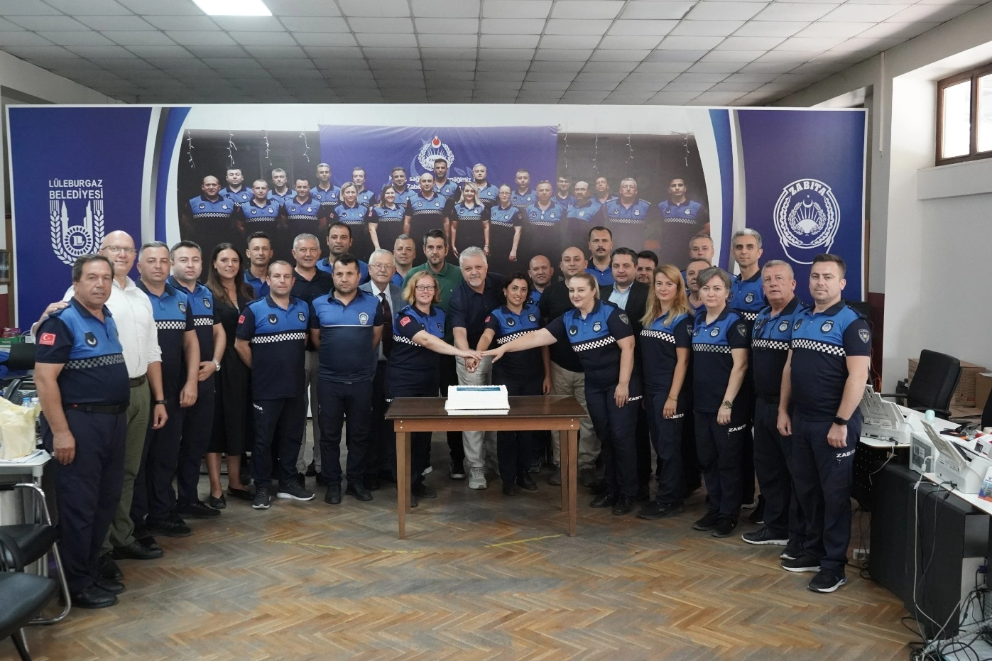 Lüleburgaz Belediye Başkanı Dr. Murat Gerenli, Belediye Başkan Yardımcıları Kemal Pektaş ve Gökhan Kaya Atay ile birlikte Zabıta Haftası çerçevesinde zabıta personeliyle bir araya geldi. Ekin Atölyesi Hizmet Binası’nda yer alan Zabıta Müdürlüğünde düzenlenen etkinlikte haftanın onuruna üzerinde zabıta teşkilatının 199’uncu yılının kutlandığının yazıldığı pasta kesildi.