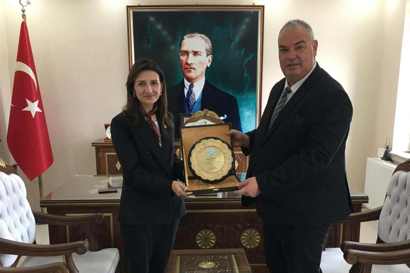 Enez Belediye Başkanı Özkan Günenç, Enez Kaymakamlığı görevine başlayan Merve Ayık'a ziyarette bulundu.
