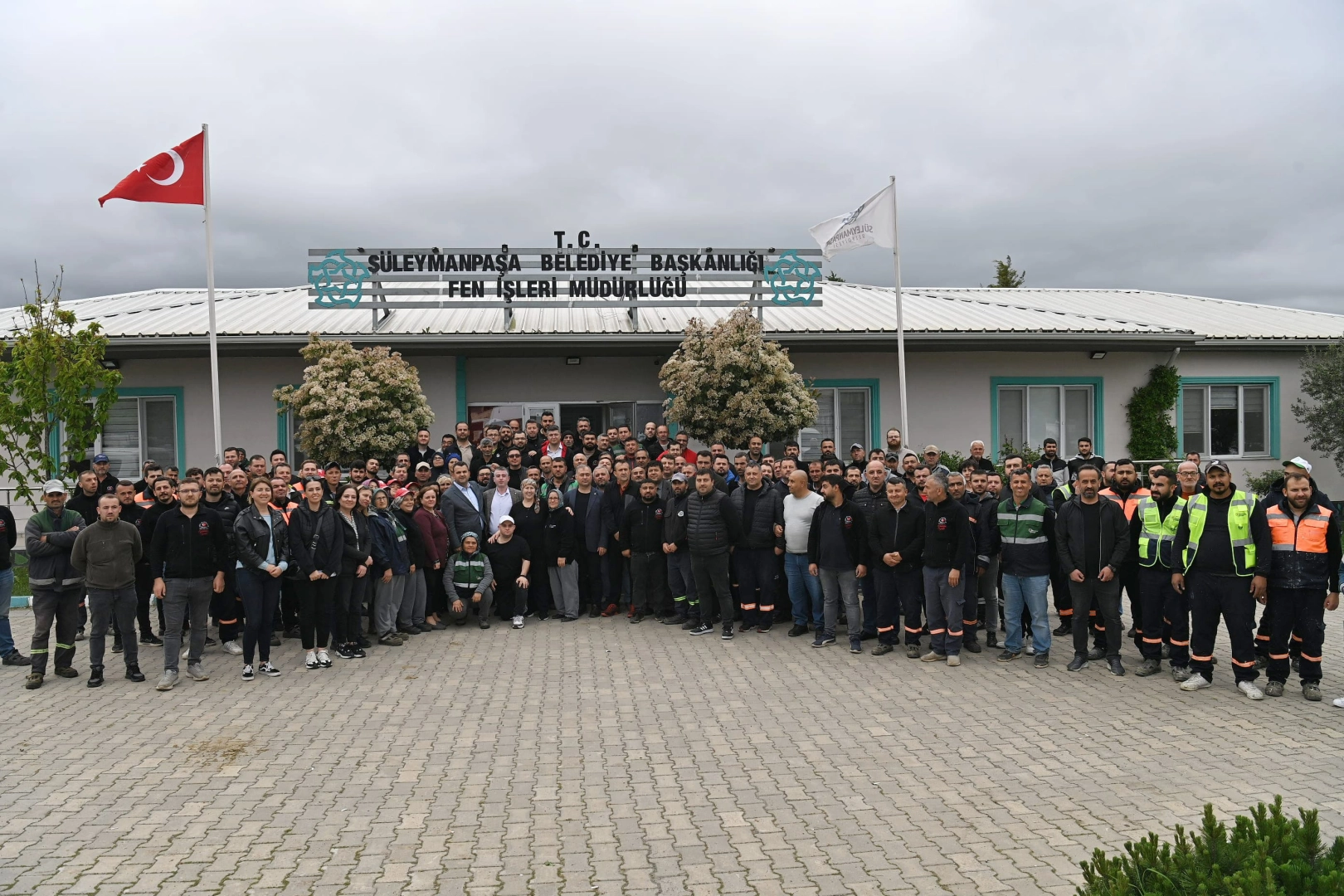 Fen İşleri Müdürlüğü Hizmet Binası önünde belediye emekçileri ile bir araya gelen Başkan Nallar, tek tek tüm çalışanların işçi bayramını kutladı. Başkan Nallar yaptığı konuşmada, “Hepinizin 1 Mayıs İşçi Bayramınızı kutluyorum. Haklarınızın sonuna kadar verildiği, emeklerinizin karşılıksız kalmadığı, herkesin adil bir şekilde çalıştığı güzel günleri hep birlikte yaşayacağız” dedi. “Sizlerin emekleri ile bu şehir çok güzelleşecek” Konuşmasına önümüzdeki günlerde yapılacak çalışmalar hakkında bilgi vererek devam eden Süleymanpaşa Belediye Başkanı Volkan Nallar, “Baharı bitirmek üzereyiz. Önümüz yaz. Bizim yapılacak çok işimiz var. Şehrimizin dört bir yanını kalkındırmak için mücadele verirken en önemli gücümüz sizlerin emekleri olacak. Her birinizin emeği için şimdiden teşekkür ediyorum. Sizlerin emekleri ile bu şehir çok güzelleşecek” diye konuştu. “Yaşasın 1 Mayıs” 1 Mayıs Emek ve Dayanışma Günü'nü kutlayan Başkan Nallar, “Durmadan, yorulmadan bu şehre hizmet etme aşkıyla emeğini, alın terini ortaya koyan her bir kardeşimin, ağabeyimin, ablamın, siz değerli emekçilerimizin 1 Mayıs Emek ve Dayanışma Günü’nü kutluyorum. Yaşasın 1 Mayıs” ifadelerini kullandı.