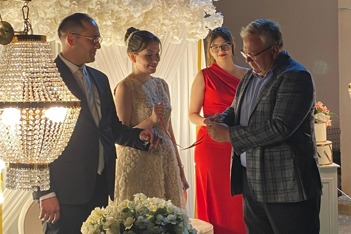 Süloğlu Belediye Başkanı Mehmet Ormankıran, Esnaf ve Sanatkarlar Odası Başkanı Saim Kulaklı’nın kızı Esra ile Ozan çiftinin nişan yüzüklerini keserek genç çiftin mutluluğuna ortak oldu.