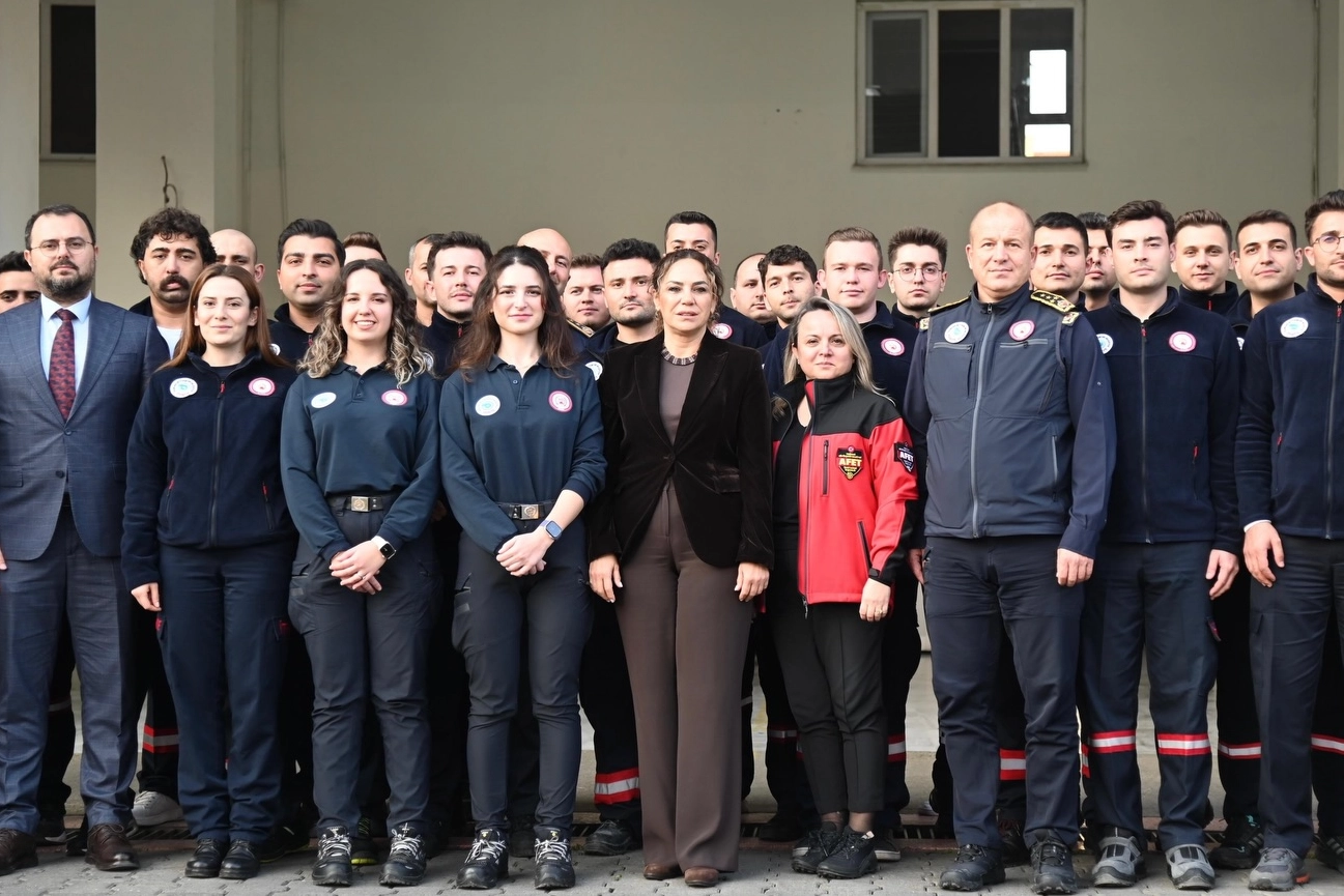 Tekirdağ Büyükşehir Belediye Başkanı Candan Yüceer, İtfaiye Dairesi Başkanlığı bünyesine katılan ve 75 günlük eğitim sürecini başarıyla tamamlayarak göreve başlayan itfaiye personelini ziyaret etti.