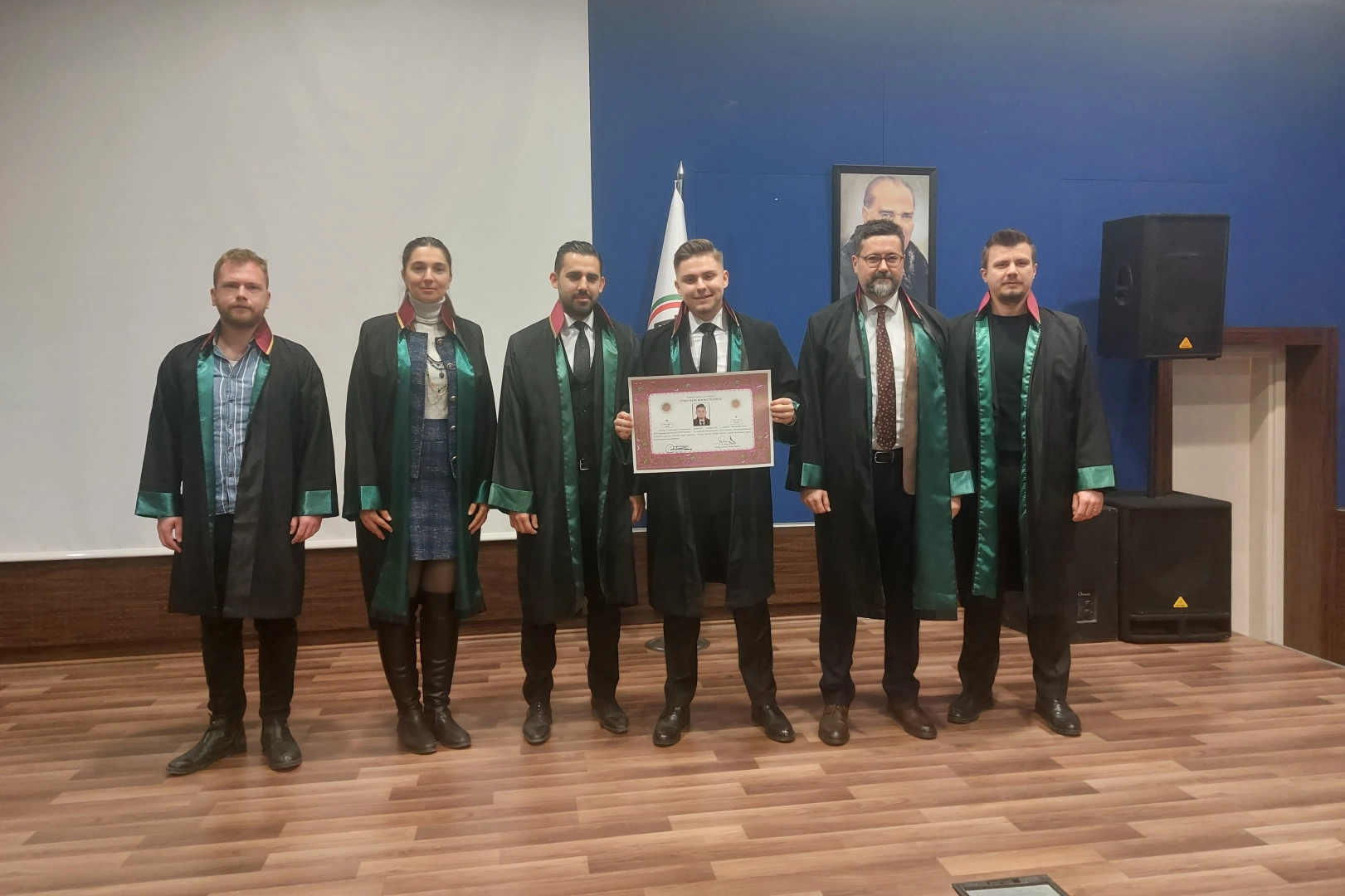 Tören Batıkan Altunhan’a Edirne Baro Başkanı Av. Gökhan Karakoç ve yanında stajyer olarak çalıştığı Av. Caner Eygül tarafından cübbesinin giydirilmesi ve ruhsat takdimi ile sona erdi.