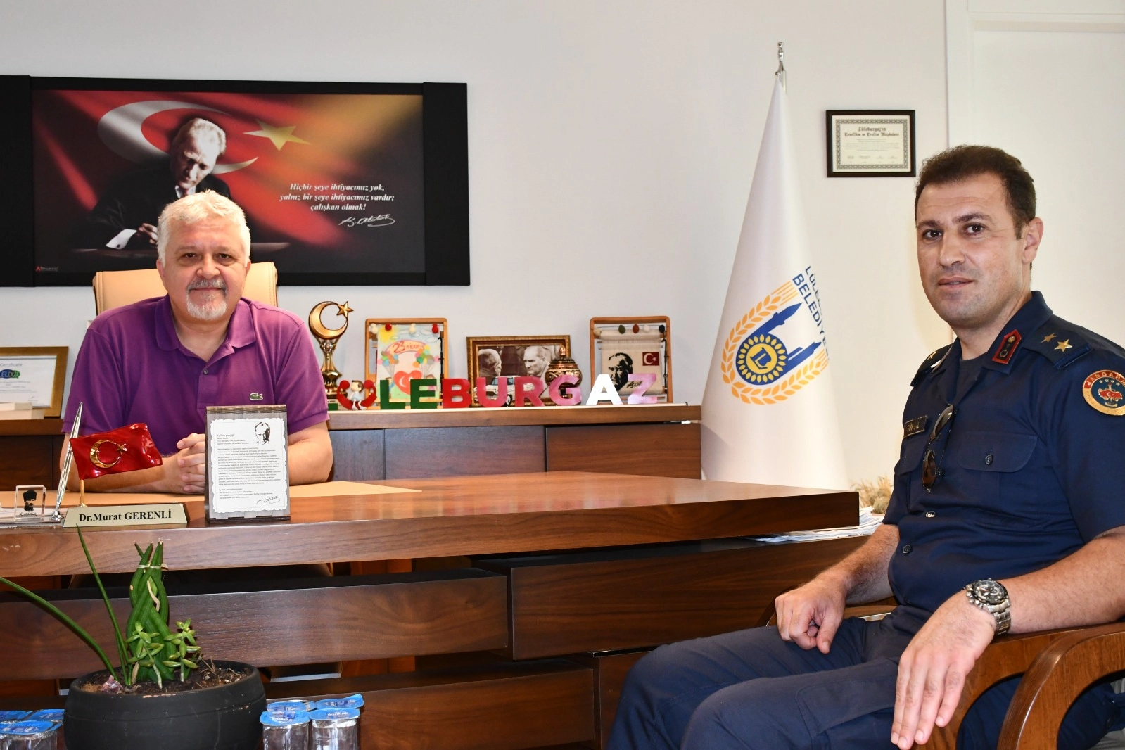 Lüleburgaz Belediye Başkanı Murat Gerenli, İlçe Jandarma Komutanlığına atanan Kıdemli Üsteğmen Hüseyin Gürgil'i makamında kabul etti.