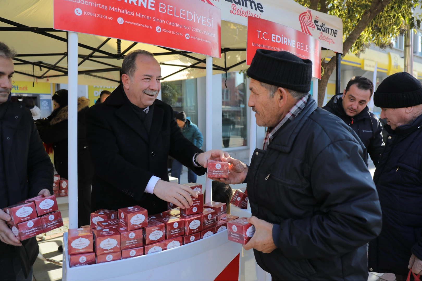Kandil simidi dağıtımına bizzat katılan Edirne Belediye Başkanı Recep Gürkan, tüm Edirnelilerin ve tüm İslam aleminin Regaip kandilini kutladı. Gürkan, burada yaptığı konuşmada tüm insanlık için barış, huzur ve kardeşlik diledi.
