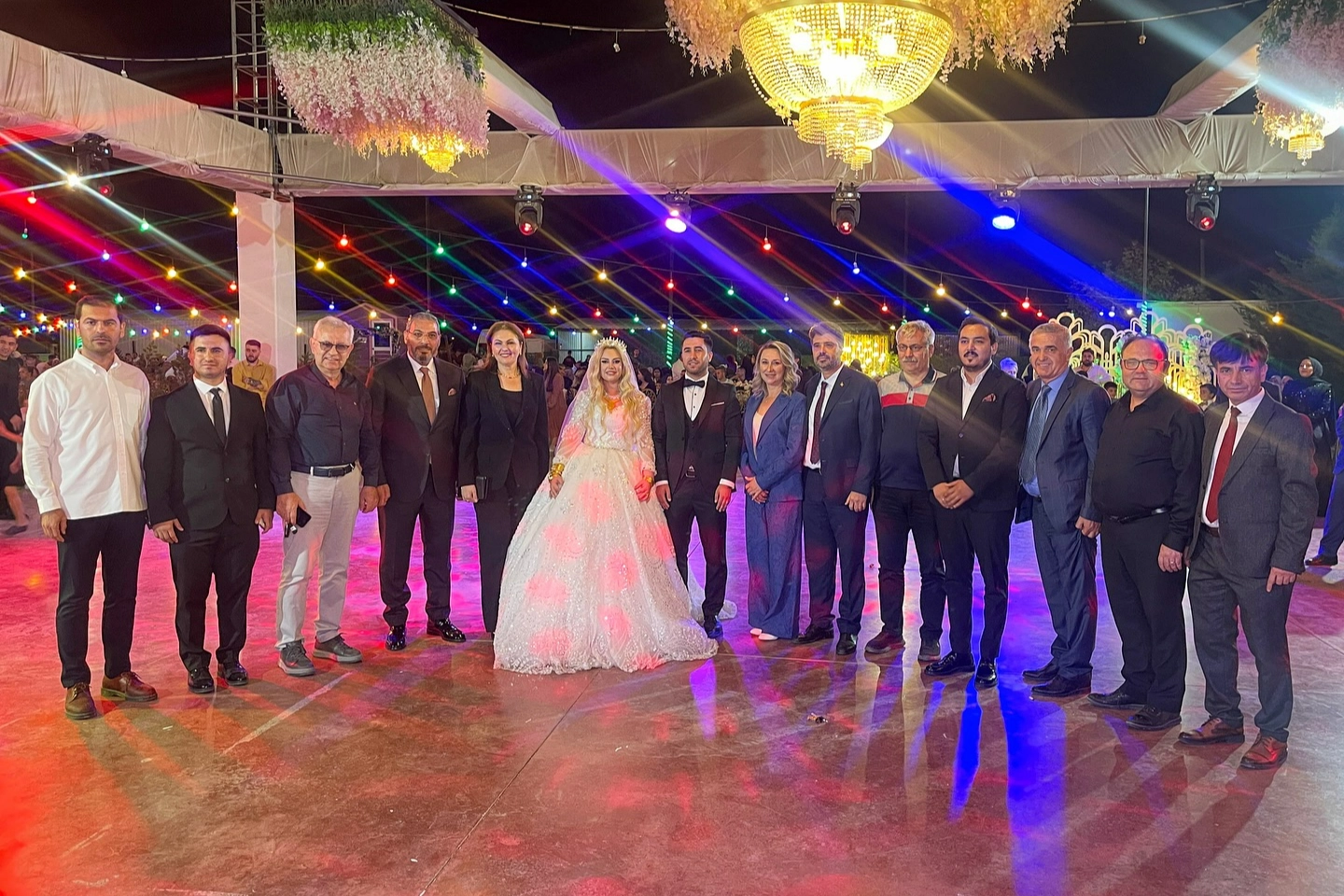 Düğün cemiyetinde çiftin aileleri, yakınları ve davetliler de genç çiftin bu mutlu gününde bir araya geldi.