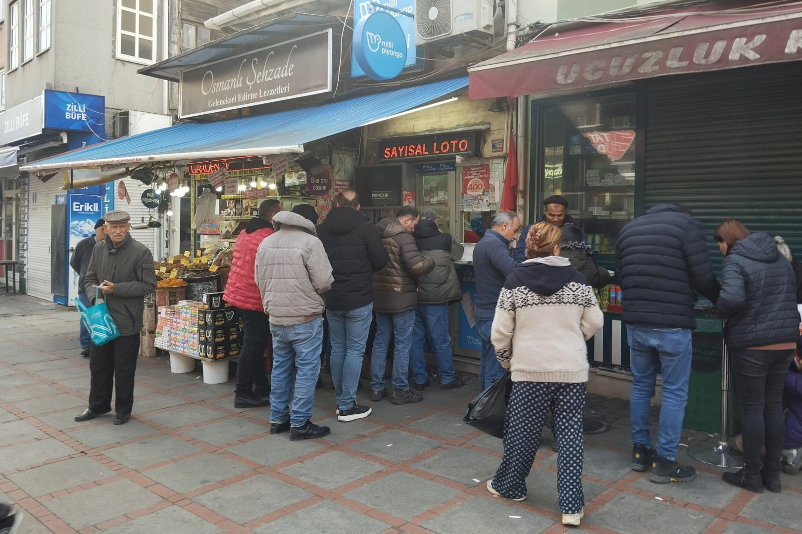 Her yılbaşında adeta bir gelenek olan yeni yıl milli piyango biletlerine, bu yıl da vatandaşlar arasında yoğun ilgi vardı. Edirne de milli piyango bayi işleten Tülay Ceylan, son gün olan 31 Aralık tarihinde saat 18.30 civarı ellerinde biletlerin tükendiğini söyledi. Bugün de ikramiye isabet eden vatandaşların, ikramiyelerini almak için geldiklerini belirten Ceylan, “Şimdiye kadar en yüksek bin 500 lira isabet eden talihli geldi, yarın daha büyük rakamların isabet ettiği talihlilerin gelmesini umut ediyorum” dedi. Ceylan; “Yeni yıl piyango heyecanı bitti. Büyük ikramiye tam bilete isabet etti. Müşteriler 1 Ocak 2024’te bayimize akın akın gelmeye başladılar. Kazandıkları ikramiyeleri paraya çeviriyorlar ya da yeniden bir sonraki çekiliş için bilet alıyorlar. Bugün ciddi bir yoğunluk yaşıyoruz” ifadelerini kullandı.