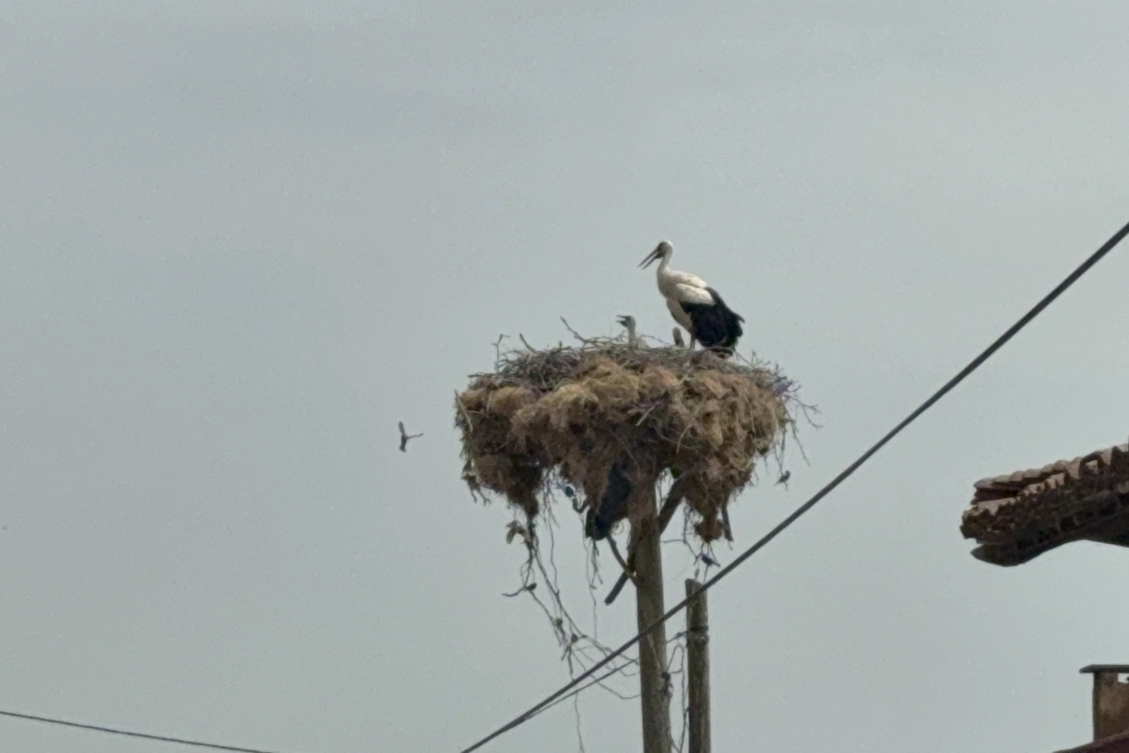Büyükpaşa köyündeki yuvada bulunan leyleğin yumurtalarından 15 gün önce 3 yavru dünyaya geldi.