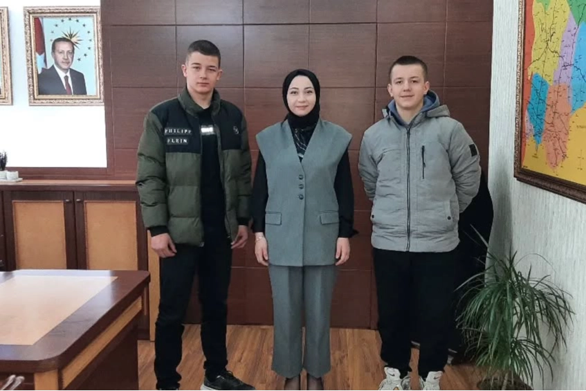 Kırklareli Pınarhisar Kaymakamı Rabia Naçar Çanakçıoğlu, Okul Sporları Bilek Güreşi Turnuvası'nda Kırklareli il birincisi olan Pınarhisar Mesleki ve Teknik Anadolu Lisesi öğrencileri Emir Türkkal ve Ali Batu Haykır'ı makamında kabul ederek başarılarını kutladı.