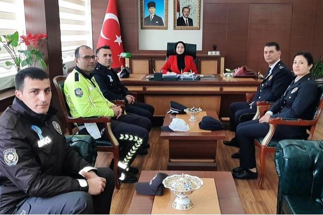 Türk Polis Teşkilatı’nın 179’uncu yıldönümü dolayısıyla Kırklareli Pınarhisar İlçe Emniyet Müdürü Nesimi Yıldırım ve polisler, Pınarhisar Kaymakamı Rabia Naçar Çanakcıoğlu’nu ziyaret ettiler.