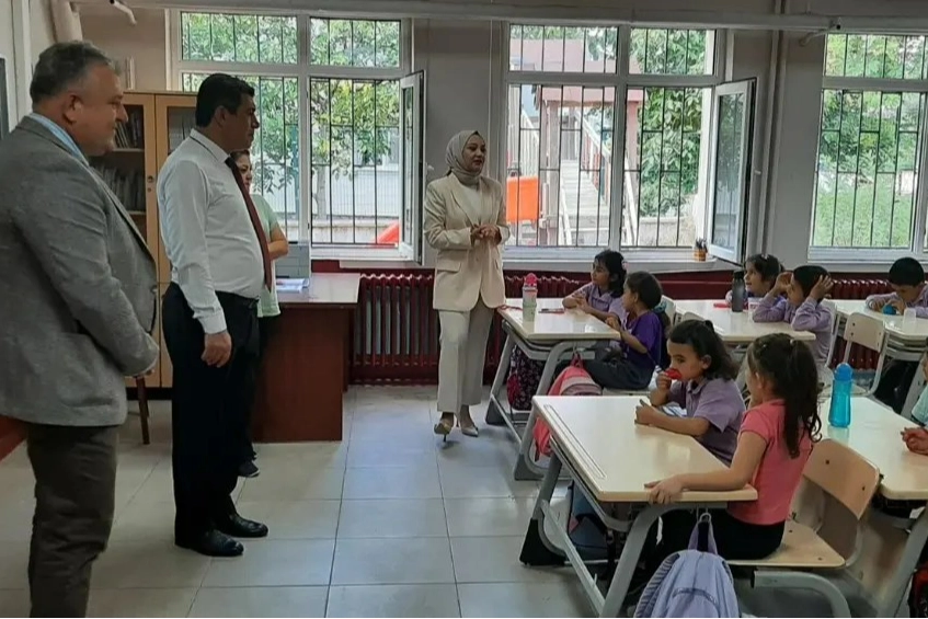 Ziyaret sırasında öğrenci ve öğretmenlerle bir araya gelen Kaymakam Çanakçıoğlu, yeni eğitim yılı için başarı dileklerinde bulundu.