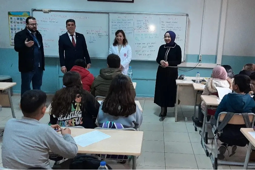 Çanakcıoğlu, beraberinde İlçe Milli Eğitim Müdürü Mahmut Doğan ile Pınarhisar İmam Hatip Ortaokulunu ziyaret etti.