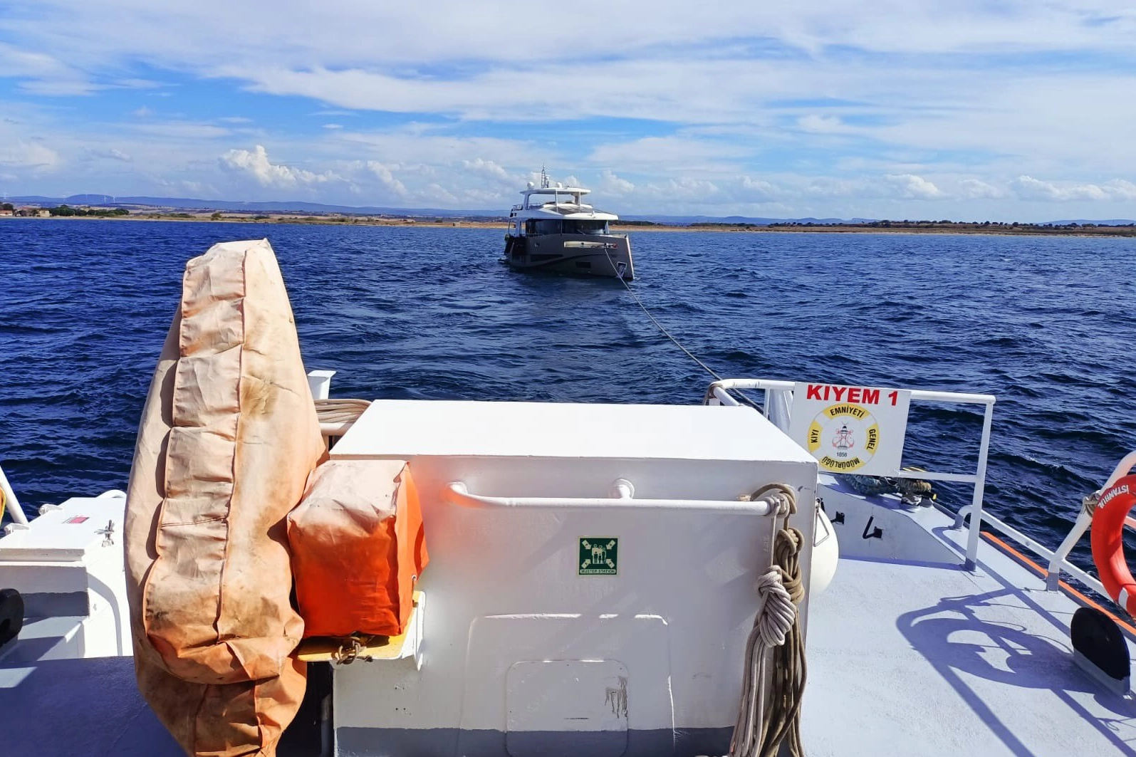 Gemi Trafik Hizmetlerine (VTS) haber verilmesi üzerine, Kıyı Emniyeti'ne bağlı KIYEM-1 hızlı tahlisiye (can kurtarma) botu bölgeye sevk edildi.