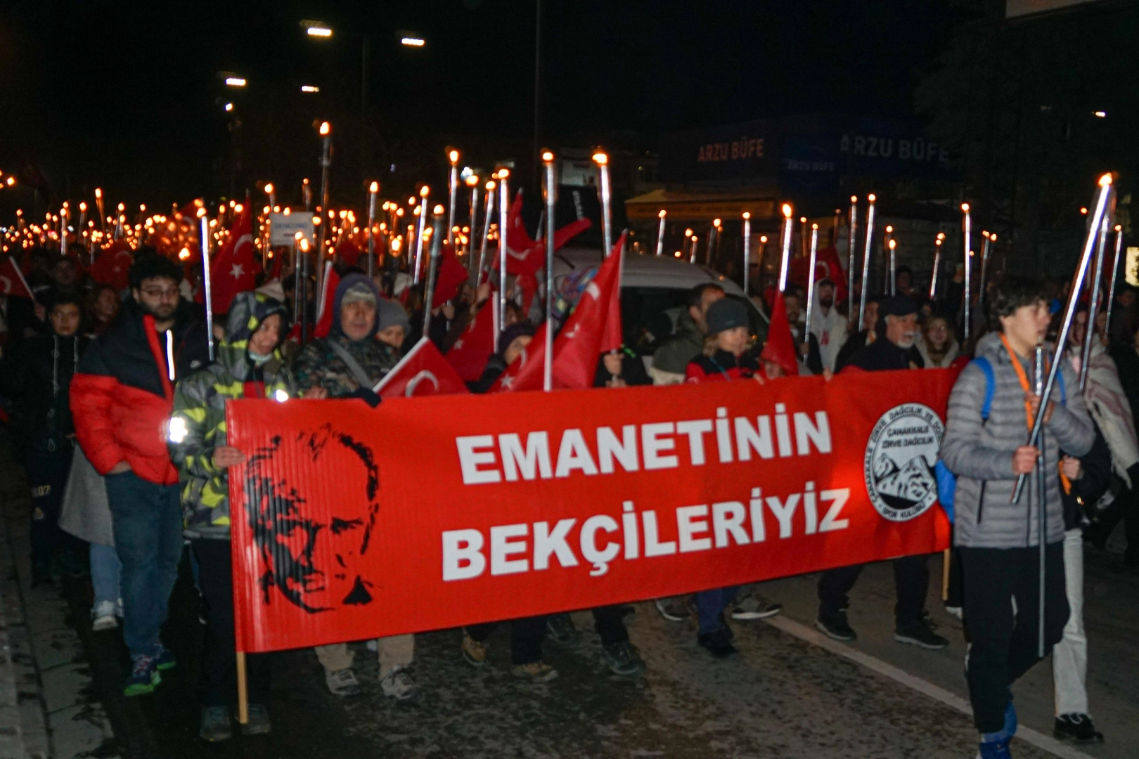 Çanakkale Valiliği tarafından kutlama programı kapsamında yapılan yürüyüş, Cumhuriyet Meydanı'nda başladı.