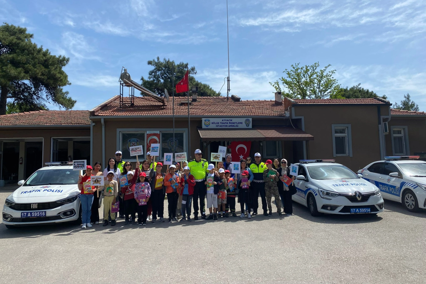 Ayvacık Bölge Trafik Denetleme İstasyon Amirliği'nde trafik polisleriyle bir araya gelen 12 özel eğitim öğrencisi, trafik araçlarına binerek teorik ve uygulamalı eğitimlerle trafik kuralları konusunda bilgilendirildi.