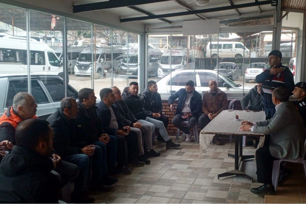 Jandarma ekipleri toplantıda, taksi şoförlerine göçmen kaçakçılığı konusunda bilgi verirken, yabancı uyrukluların araçlara alınması konusunda dikkat edilmesi gereken hususları aktardı.