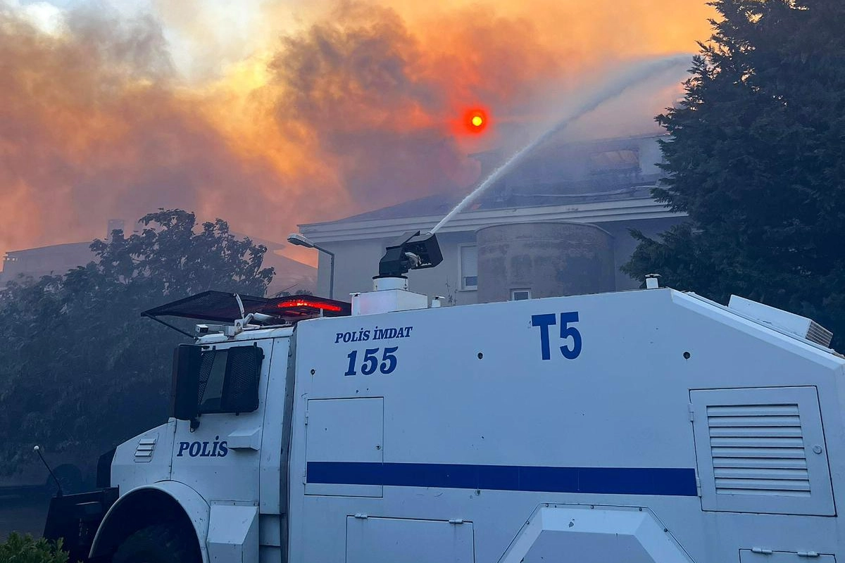 Polis ekipleri, Güzelyalı'daki yazlıklarda yaşayanların tahliyesine destek oldu. Ekipler, TOMA ile alevlerin sardığı evlerde ve ormanlık alanlarda söndürme çalışmalarına katıldı.
