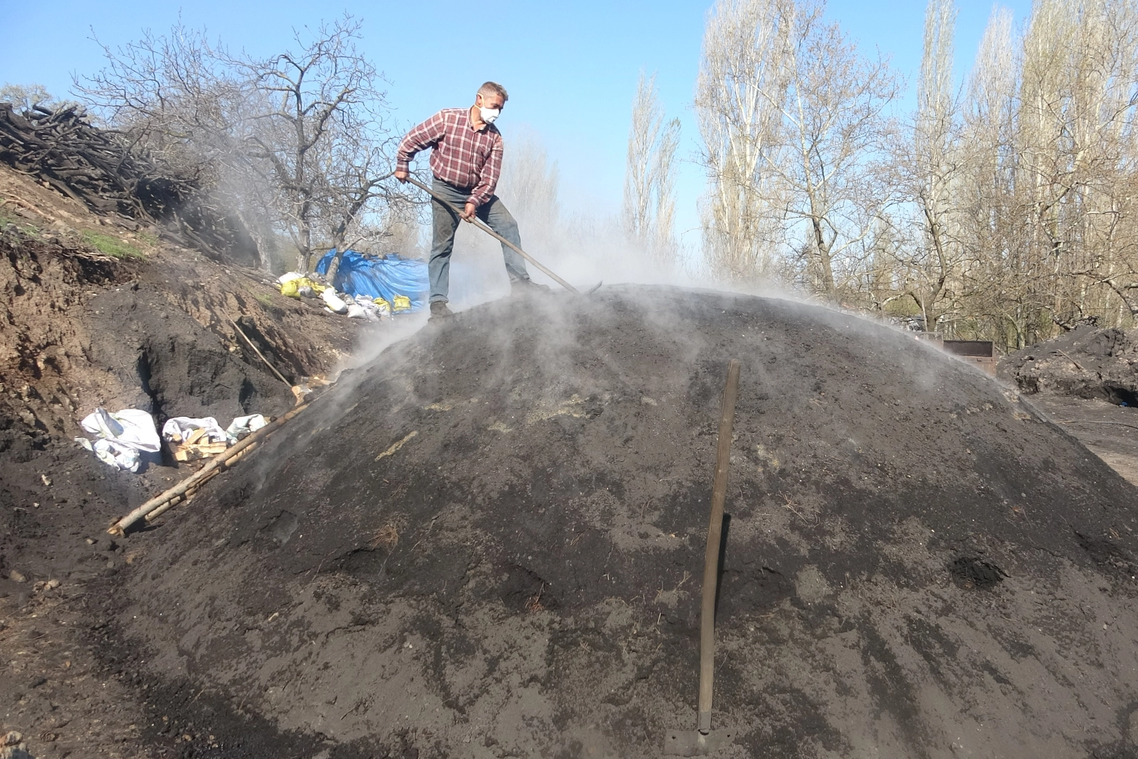 Mangal kömürüne uygun olan odunları, koni şeklinde dizip üstünü saman ve toprakla kapatarak "ocak" kuran Güngör, bu ocakların tepesinde açtığı delikten attığı közlerle odunları kontrollü şekilde 10-15 gün boyunca yakıyor.