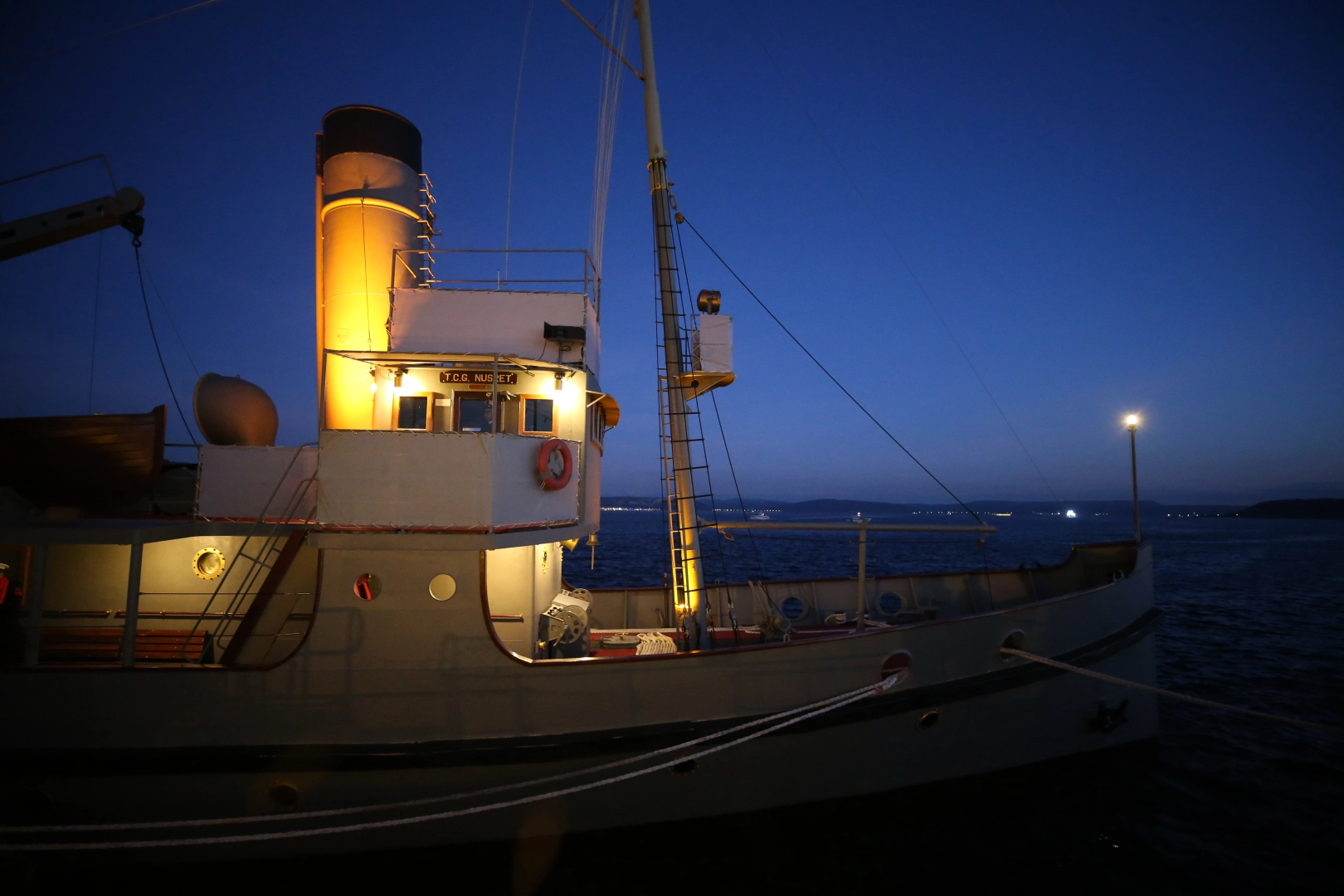 Gemide bulunan protokol üyelerine, Nusret'in 111 yıl önceki kahramanlığı video gösterimiyle anlatıldı.