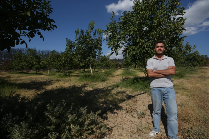 Eceabat'a bağlı Kumköy'de ailesiyle 30 dönüm alanda ceviz üretimi yapan Ahmet Diksin'in arazisi de yangından çok az etkilendi.